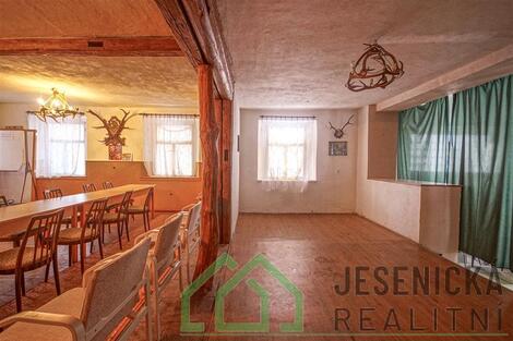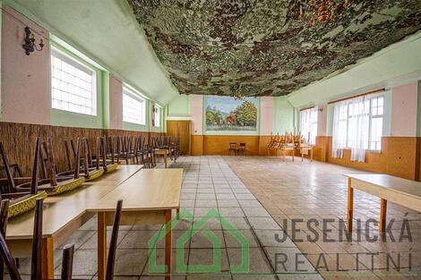 Jesenická realitní v zastoupení majitele , nabízí k prodeji kulturní dům v obci Bílý Potok v okrese Jeseník, který má velký potenciál ve své tradici pokračovat a dále sloužit ke kulturním akcím, nebo nabízí taky možnost k podnikání. Dominantou domu je velký prostorný taneční sál, který se může využít např. jako autoservis, nebo prostor pro různou výrobu. V domě ve spodní části jsou další prostory ,které slouží pro občerstvení. Nachází se zde barový pult, kuchyň, šatna a sociální zařízení, nebo zázemí pro zaměstnance. Horní část domu ( podkroví ) nabízí možnost vybudování velkého podkrovního bytu pro celou rodinu. Celková podlahová rozloha domu je 281 m2, pozemek 535 m2. V roce 2014 si prošel dům částečnou rekonstrukcí, výměna starých oken za nová plastová, podlahy, wc a sociální zařízení. El. rozvody jsou v mědi, voda a odpady v plastu. Dále nové omítky a dřevěné obklady a nová komínová vložka na sále. Vytápění domu zajišťují krbová kamna a ohřev vody, bojler. Pokud hledáte dům ve kterém chcete podnikat a zároveň bydlet se svou rodinou, neváhejte a určitě se přijeďte podívat, protože máme co nabídnout. Budeme se těšit na vaší návštěvu. Dům nebyl postižen povodní.