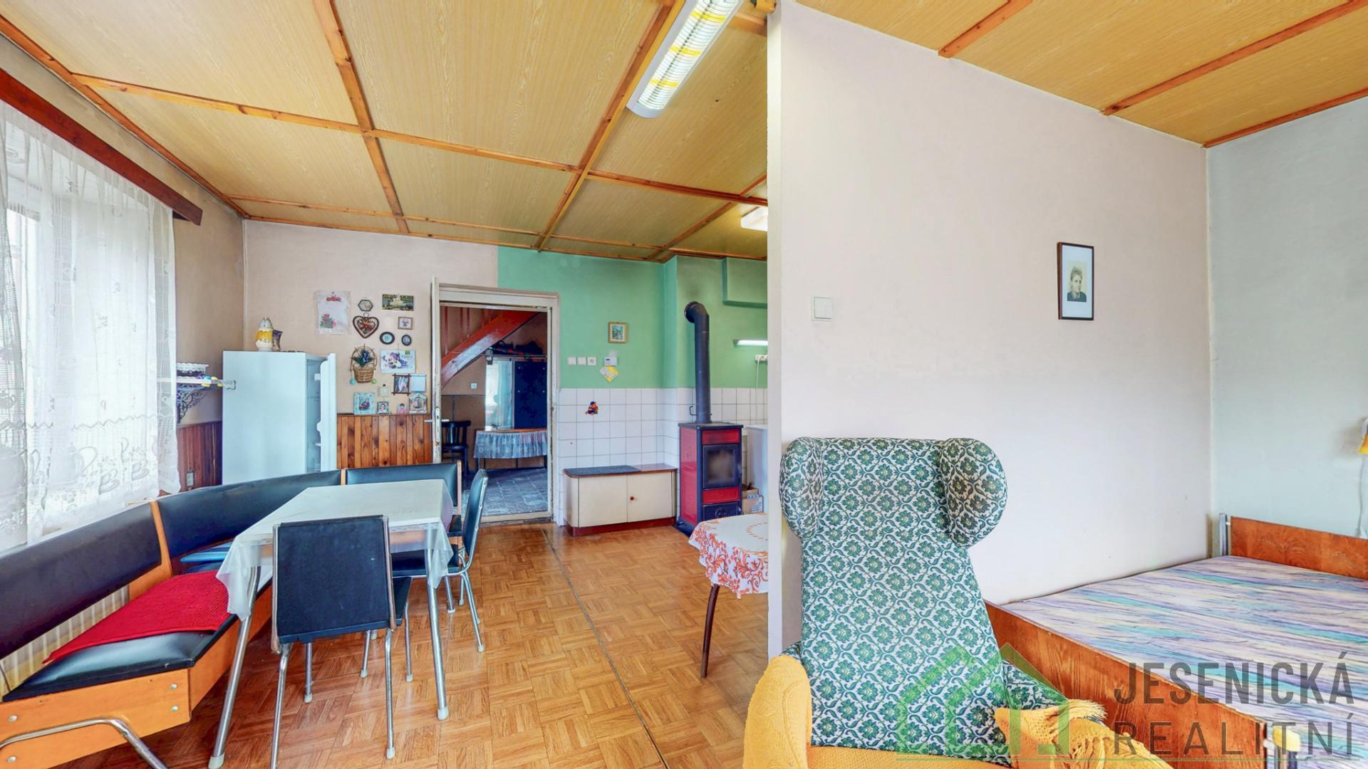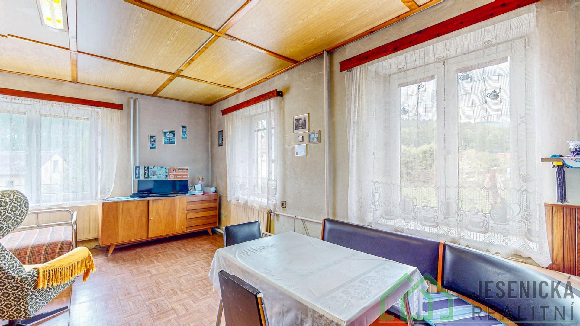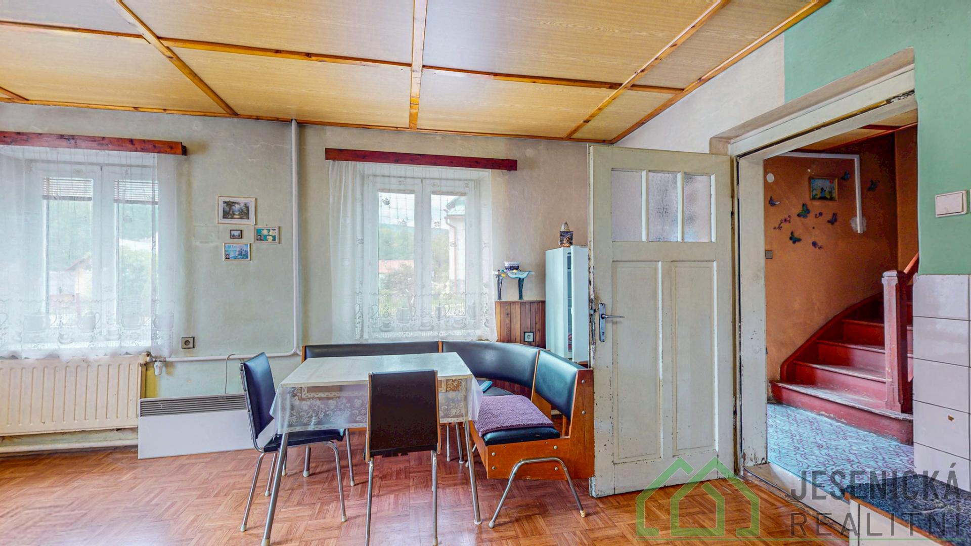 Jesenická realitní představuje jedinečnou příležitost pořízení rodinného domu v obci Černá Voda, okr. Jeseník. Tato obec je vyhlášená cyklostezkami, které vás provedou nejen okolím Černé Vody, ale i Rychlebskými horami. Nemovitost se může stát rodinným domem, případně chatou, kterou můžete pronajímat, nebo vyžívat k víkendovým pobytům. Jde o dům dýchající venkovskou atmosférou, v klidné lokalitě, obklopený přírodou . 5 minut od domu objevíte zatopený lom Rampa, oblíbené místo ke koupání v čisté vodě pod kamennou stěnou , zachovanou po původní těžbě. Dům má bezbariérový vstup, rozdělen je na dvě podlaží. V prvním se nachází kuchyň s menším obývacím pokojem, koupelna, vstupní chodba, technická místnost a prostor pro uskladnění uhlí či dřeva. Ve druhém podlaží naleznete tři pokoje. Půda nabízí ideální přístup a možnost vytvoření dalšího prostoru k bydlení , případně další ubytovací kapacity. Stav domu je dobrý. Byl postaven v roce 1954, jeho zastavěná plocha je 121 m2 a pozemek má celkovou plochu 754 m2. V roce 2019 byla na domě vyměněna stará okna za nová eurookna. Vytápění je zajistí centrální el. kotel nebo krbová kamna umístěná v kuchyni. Rozvody elektřiny jsou v hliníku, vodní a odpadní rozvody jsou před výměnou. O ohřev vody se postará el. bojler. Dům je připojen na obecní vodovodní řád. Odpady jsou svedeny do septiku. Působivou dominantou jsou okrasné vzrostlé lípy, které poskytnou příjemné zátiší k odpočinku či posezení u ohně. Lípy také tvoří zelený tunel vedoucí k louce za domem. Hledáte místo, kde chcete spokojeně žít se svou rodinou? Případně toužíte po nemovitosti, jež budete pronajímat hostům, aby u vás prožili zajímavou dovolenou? Nuže je to právě toto místo, přijeďte se podívat a nechte se oslovit. Budeme se těšit na osobní prohlídku. O ceně jsme připraveni jednat.