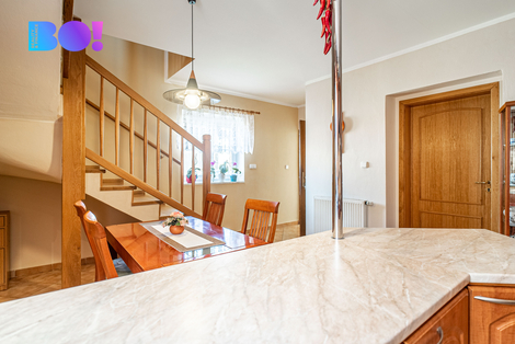 Hledáte komfortní dvougenerační bydlení v klidné lokalitě s perfektní dostupností do města? Nabízíme Vám jedinečný rodinný dům v obci Červenka, nacházející se v samém srdci Hané, jen 15 minut jízdy od Olomouce a 5 minut od Litovle. Tato lokalita spojuje klid venkova s výhodami městské infrastruktury v dosahu. Obec má vlakové i autobusové spojení, základní občanskou vybavenost a především krásnou přírodu v okolí - ideální pro rodiny, rekreaci i aktivní život. Dispozice domu: Hlavní jednotka: 4+1 Druhá jednotka: 2+1 Výměra pozemku: 2 875 m2 Podlahová plocha domu: cca 442 m2 Zahrada: 2 255 m2 Vlastní vstup do každé jednotky Samostatné plynové kotle, elektroměry i plynoměry Energetická náročnost budovy: třída D (méně úsporná) Dům prošel v roce 2002 kompletní rekonstrukcí: nové rozvody elektřiny, vody a odpadů, nová okna a dveře, fasáda, střecha (pálená taška), podlahové krytiny (keramická dlažba, plovoucí podlaha, dřevěná prkna, koberce). Napojeno na veškeré inženýrské sítě - voda, elektřina, plyn, kanalizace. Ohřev vody zajištěn elektrickými bojlery. V domě jsou dvoje krbová kamna pro příjemnou atmosféru. Z obývacího pokoje v patře je přímý vstup na velký balkon s krásným výhledem do okolní přírody, který nabízí ideální prostor pro ranní kávu, odpočinek nebo večerní posezení. Na dvoře se nachází samostatná budova určená k relaxaci a společenskému využití: - vnitřní a venkovní posezení, - bar, - krbová kamna, - místnost s kulečníkem, - samostatné WC a sprcha, - přímý vstup do krytého bazénu s pískovou filtrací. Součástí objektu je také garáž se sekčními vraty a venkovní posezení s grilem a udírnou. Na rozlehlé zahradě dále najdete pergolu s posezením, dílnu, skleník a dřevník pro uskladnění dřeva. Zadní část zahrady tvoří zeleninová zahrádka a ovocný sad se vzrostlými stromy - ideální pro milovníky přírody a pěstování. Skvělá poloha - klid, příroda a město na dosah 15 minut od centra Olomouce 5 minut do Litovle Přímé vlakové i autobusové spojení Krásné přírodní okolí, cyklostezky, řeka Morava Výborná dostupnost dálnice D35 V případě zájmu o prohlídku nás neváhejte kontaktovat. S případným vyřízením financování také rádi pomůžeme.