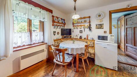 Prodej rekreačního domu v obci Travná u Javorníka klid, příroda, soukromí Nabízíme k prodeji kouzelný rekreační dům v malebné obci Travná (Javorník), ležící na samotě přímo pod lesem na konci zástavby, kde Vás obklopí jen příroda, lesy, louky a naprostý klid. Pozemek Celková výměra pozemků činí 5 017 m pečlivě udržovaná zahrada s upraveným trávníkem, okrasnými skalkami a vzrostlými stromy (např. ořech, bříza, túje). Zadní část pozemku tvoří parkově upravená plocha s možností zahradničení. Na pozemku se nachází také tři dřevěné sruby sloužící jako sklady nářadí a zahradního vybavení. Dům Celková obytná plocha domu je cca 85 m, dům má dvě podlaží: Přízemí: Zimní zahrada s krásným výhledem do okolí ideální pro posezení Obývací pokoj s krbem Kuchyně Ložnice Koupelna, WC Kotelna a sklad paliva Podkroví: Prostor pro spaní až pro 8 osob Dům je celý zařízený v okouzlujícím chalupářském stylu, interiér je útulný a působí velmi příjemně. Technické informace Vytápění: kotel na tuhá paliva Thermika (instalace 2021), elektrické přímotopy Ekoflex, krb, lázeňská kamna (ohřev vody) Voda: z kopané studny umístěné na kopci za domem (sdílená, rozdělená na podíly) Odpad: sveden do septiku Rozvody vody a odpady: vedeny v plastu Okna: kastlová Komíny: 3 komíny, všechny s vložkami a platnou revizí Další informace Dům je volný k nastěhování od ledna 2026 Cena k jednání Tato nemovitost je ideální pro milovníky klidu, přírody a soukromí. Výborné místo pro rekreaci, trvalé bydlení nebo investici. Neváhejte a požádejte o osobní prohlídku, těšíme se na vaši návštěvu. Jesenická realitní, partner na trhu s nemovitostmi. <a href="https://www.eurobydleni.cz/pozemky/stavebni-pozemek-bydleni/praha-zapad/obec-ohrobec/prodej/"><strong>Prodej stavebního pozemku Ohrobec</strong></a>