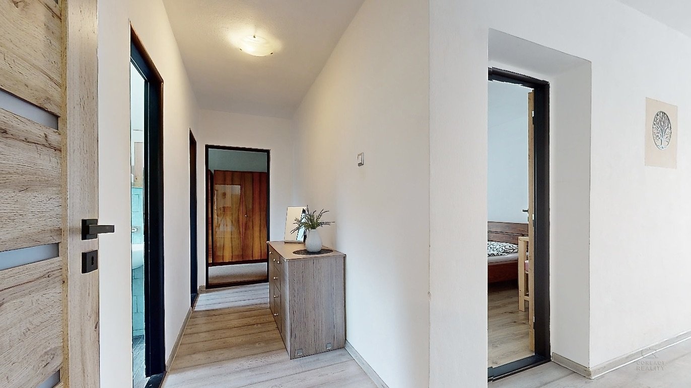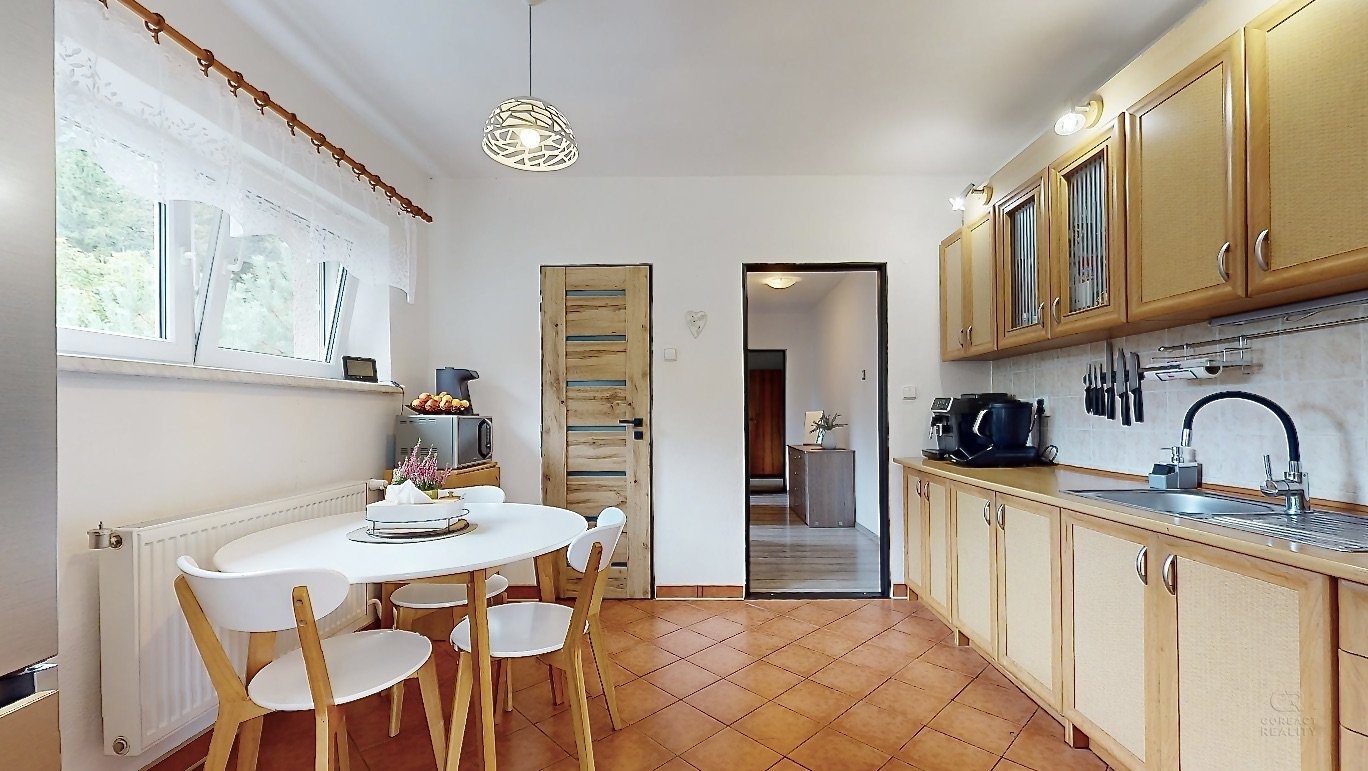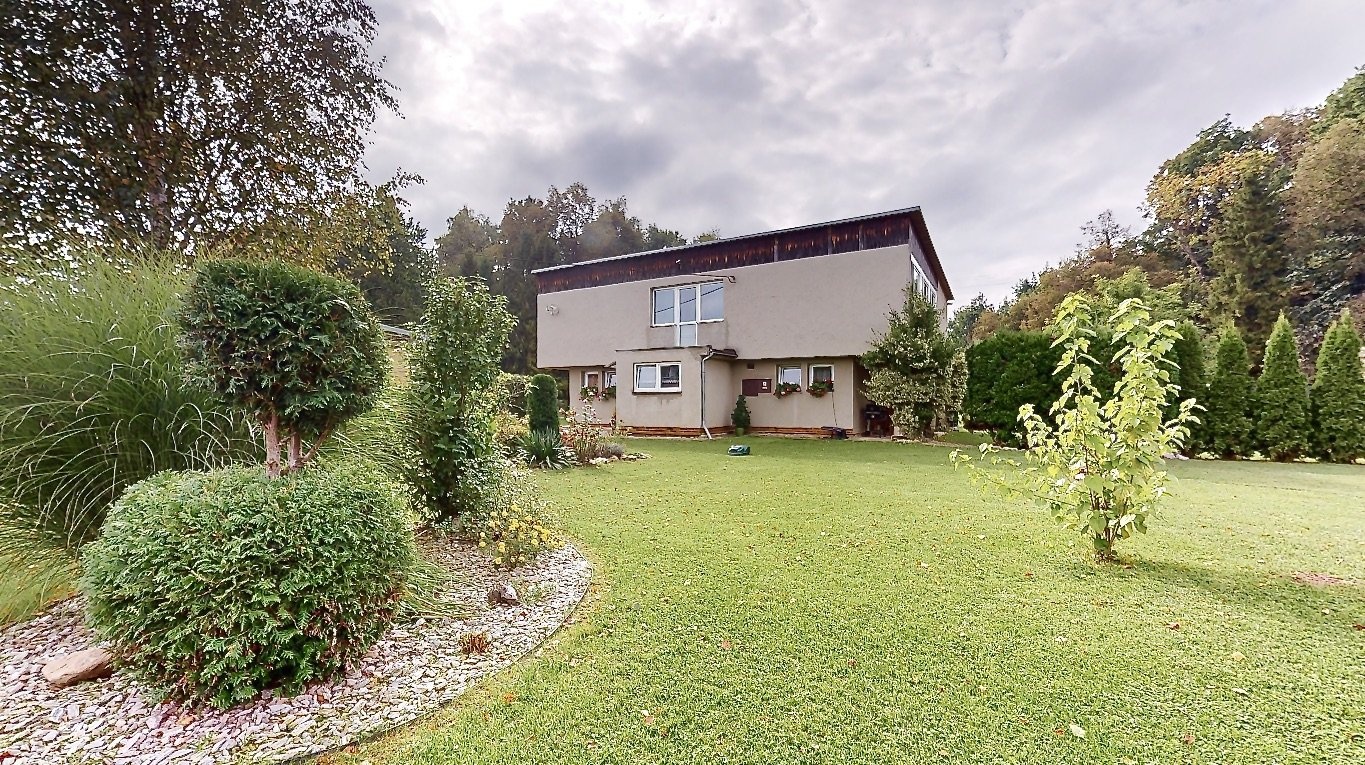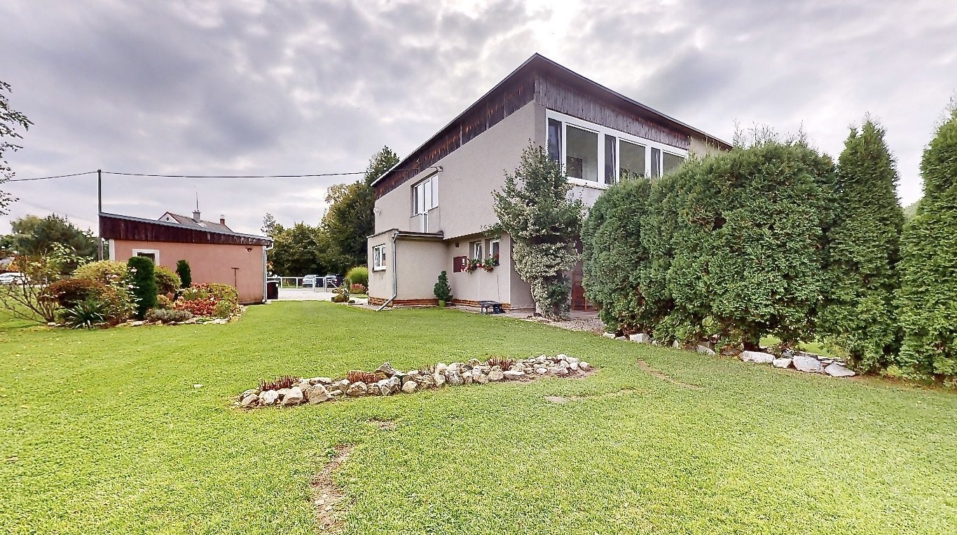 Nabídnu vám krásný a prostorný dům s velkou zahradou v obci Stará Červená Voda. Dům má dispozici 4+1 s užitnou plochou 215m2 ve dvou podlažích, kdy v přízemí se nachází vstupní veranda, ze které se vchází do velké haly. Hala rozděluje vstupy do pokoje pro hosty, dále dvou místností s technickým zázemím a další vstup je do kotelny, která je propojená s garáží. V patře domu je dispozice 3+1 - prostorný obývací pokoj, na který navazuje menší místnost, dále kuchyně, ložnice, dětský pokoj, koupelna, samostatná toaleta, šatna a spižírna v kuchyni. Pokud někdo bude chtít udělat větší dispozici, tak je tato varianta také možná. Nabízí se také možnost přikoupit sousedské parcely o výměře 1393 m2. Tím, že dům je typem Šumperák, tak je v něm hodně světla díky velké ploše umístění oken. Dokonce ložnicí a dětský pokoj v patře propojuje uzavřená lodžie a nejen, že dává spoustu světa do místnosti, ale tvoří tak další místo na uskladnění věcí. Zahrada má výměru 3193m2, je velmi hezky udržovaná a tím, že se jedná o rovnou plochu, tak část zahrady udržuje robotická sekačka, což velmi usnadní čas a práci. K domu patří další dvě stavby: 1) bývalý obchod, ten nyní slouží na uskladnění věcí a 2) v zadní části zahrady je zděná kůlna, která je podsklepena a nyní slouží také na uskladnění věcí. Obec Stará Červená Voda sousedí s městem Vidnava a obcí Velká Kraš, do pár minut jste v Černé Vodě a také v Žulové. Klidnou jízdou jste v Jeseníku do 25 min. V prezentaci je 3D virtuální prohlídka, která vám dům ještě přesněji vystihuje a v případě dalších dotazů jsem na telefonu i o víkendu. Co se týče financování, tak s tímto vám rád poradím a můžu zajistit hypotéku přesně na míru vašim potřebám.