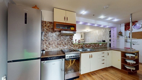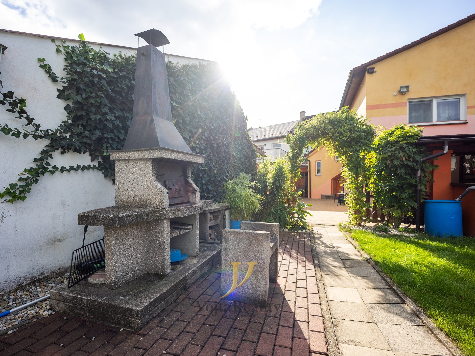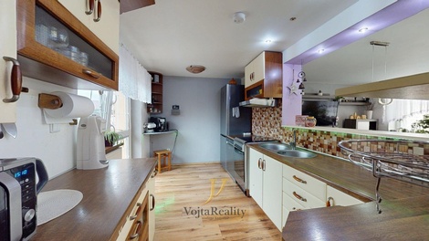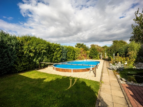 Vážení klienti. Dovolujeme si Vám nabídnou rodinný dům se zahradou a bazénem v Grygově, v Komenského ulici. Dům o rozloze 200 m2 je dispozičně rozdělený na dvě bytové jednotky s vlastními vstupy. Bytová jednotka umístěná v 1. NP nabízí dispozici 3+kk s velkoryse řešenou předsíní. Hlavní bytová jednotka přístupná samostatným schodištěm nabízí dispozici 4+kk s balkonem a přístupem na půdu. Dům kopíruje půdorys písmene ´´L´´, kdy na část orientovaná do vnitrobloku navazuje technická místnost, zastřešené posezení pro větší počet osob, využitelné takřka za každého počasí. Dům je zbudovaný z páleného cihlového zdiva, okna jsou osazena dvouskelnou výplní v plastovém rámu, podlahy variantní - laminátové krytiny, pvc, a dlažba. Velkým benefitem stavby je objem skladovacích prostor na půdě, která kopíruje základní půdorys stavby, což činí cca 70m2 dodatečné plochy. Rozvody v domě splňují současné technické požadavky, tj. elektřina v mědi, rozvody topení v mědi, odpady a rozvody vody v plastu. Nemovitost je napojena na kompletní technickou infrastrukturu, vodovod, kanalizace, plynovod, elektřina a během roku 2026 bude dokončeno připojení na optický kabel. Taktéž se v nádvoří nachází kopaná studna s čerpadlem. Tuto vodu lze přepínat s vodovodním řádem a využívat pro užitkové účely v domě apod. Bazén je vyhřívaný vlastním tepelným čerpadlem. Na vnitroblok domu navazuje funkční zahrada na které se nachází bazén, jezírko pro okrasné ryby a dále pak pěstitelská zóna se záhony, ovocnými stromy a vinnou révou. PENB připravujeme. Financování koupě zajistíme prostřednictvím zkušeného specialisty. Pro více informací a sjednání prohlídky prosím kontaktuje makléře.