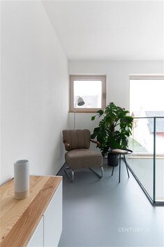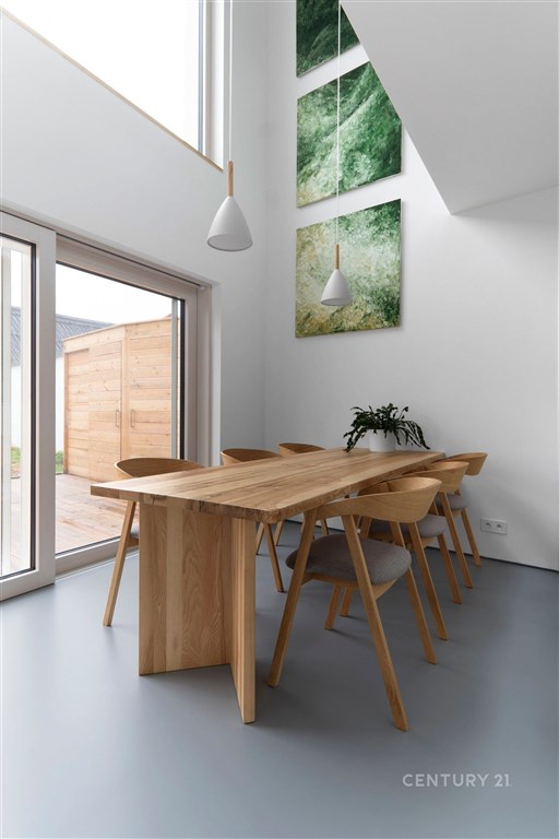 Představujeme Vám k prodeji plně vybavenou novostavbu v obci Senice na Hané, reprezentující moderní architektonický koncept spojený s prvotřídními materiály a technologiemi. Jedná se o čtyřpokojový třípodlažní dům s otevřeným obývacím prostorem nad kuchyní a výhledem do zahrady v úsporné třídě B, dokončený a zkolaudovaný v roce 2023. Projekt domu byl zpracován architekty z ateliéru Tři.čtrnáct. Dům byl vybrán a publikován v uznávané architektonické knize 66 domů, která představuje to nejlepší ze současné architektury. Při vstupu z ulice najdete exteriérovou chodbu, vedoucí na zahradu a zároveň i do domu. Dispozice zahrnuje vstupní zádveří s šatními skříněmi, prosklenou kuchyni s otevřeným stropem, jídelnou a vstupem na terasu, dále koupelnu se sprchovým koutem a komoru s úložným prostorem. Schodiště vás zavede do druhého nadzemního patra s otevřeným obývacím prostorem, technickou místností a dětským pokojem s vestavěnou skříní. V podkroví, tedy 3. patře tohoto domu naleznete druhý dětský pokoj s velkým střešním ateliérem a šatnou, ložnici s rozsáhlou vestavnou skříní a druhou koupelnu. Pro úsporu energie je dům vybaven tepelným čerpadlem, sloužícím k vytápění a ohřevu vody, a také systémem rekuperace pro efektivní výměnu vzduchu. Dům je navíc ale také v obývacím pokoji vybaven designovými krbovými kamny zn. Jotul. Interiérové prvky nesou razantní podpis kvality, včetně masivních prvků z jasanu, bezzárubňových dveří s křídly z masivního dřeva v laku a kuchyňské linky taktéž v laku. Vybavení kuchyně zahrnuje spotřebiče od značky Siemens, desku z umělého kamene a podlahy z polyuretanu. Koupelna disponuje prvky od špičkových výrobců. Dům je vybaven izolací z PUR pěny, protihlukovými předstěnami a příčkami (systém Rigips). Střecha je osazena velkoformátovými střešními ateliéry z hliníku, včetně odrazové úpravy, motorů pro pohodlné otevírání a screen rolety na jižní straně, zajišťující optimální komfort a efektivitu. Exteriér domu zaujme terasou z kvalitního sibiřského modřínu, plotem s prémiovou lazurou, zahradním domkem a přípravou pro přístřešek na auto. K domu je navíc zpracovaný i projekt od zahradního architekta. Díky využívání nízkoenerg. štítku a inovativních technologií dochází k výraznému snížení měsíčních životních nákladů. Tato kombinace umožňuje udržet měsíční výdaje pod hranicí 3000 Kč. Dům bude ideální volbou pro ty, kteří hledají spojení moderního bydlení s klidem okolní krajiny, nese v sobě harmonickou kombinaci moderní architektury, energ. efektivity a nadstandardního vybavení. Tato nemovitost se nachází v obci s veškerou občanskou vybaveností, včetně školy, školky, obchodu, sportoviště i pošty. Dostupnost na dálnici a do Olomouce je na dosah. Na tuto nadstandardně vybavenou nemovitost je možné využít financování za nejvýhodnějších podmínek se snižováním úrokové sazby. Pokud jste tedy vždy snili o domově, který spojuje nejmodernější technologie se špičkovými materiály a luxusem, máme pro vás jedinečnou příležitost!