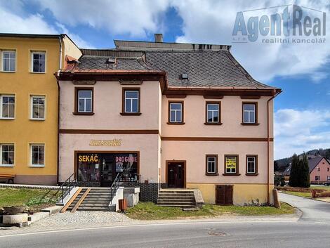 Nabízíme k prodeji bytový dům s komerčními prostory na náměstí ve Starém Městě pod Sněžníkem. Jedná se o nemovitost s prodejnou a byty, která je vhodná pro přebudování na apartmány. Objekt je určen ke kompletní rekonstrukci, poskytuje možnost změny dispozice a výrazného zvýšení počtu bytů/apartmánů. Blízký lyžařský areál nabízí nejmodernější šesti sedačkovou lanovku s vyhřívanými sedačkami. Lyžařské propojení Stříbrnic a Hynčic pod Sušinou vytváří jeden velký areál s 12 sjezdovkami. V dosahu jsou lyžařské areály Paprsek, Kunčice, Branná, Dolní Morava, atd. V 1. NP budovy vlevo se nachází prodejna s textilem a drogerií, plocha prodejny včetně zázemí je 94 m2. Na pravé straně objektu je samostatná místnost o ploše 26 m2, která byla využívaná jako kadeřnictví, v současnosti se nabízí na přebudování na malometrážní byt či propojení se sousedním bytem. Dále je v 1. NP byt 2+1 o celkové ploše 50 m2. V 2. NP se nachází 2 byty. Jeden je o velikosti 2+1 s plochou 100 m2. Druhý byt 3+1 má plochu 114 m2. Dům má plastová okna, je připojen na obecní vodu, kanalizaci a elektriku. Velké prostory na půdě nabízí možnost vybudování dalších bytů. V současné době je pronajata pouze prodejna, byty jsoubez nájemních smluv. Cena je vč. provize a právních služeb. Před osobní prohlídkou se prosím podívejte se na 360DEG virtuální prohlídku na naší domovské stránce AgentReal, kde si nemovitost prohlédnete mnohem lépe než z běžných fotografií či videa. <a href="https://www.eurobydleni.cz/komercni-nemovitosti/kancelar/decin/obec-decin/pronajem/"><strong>Pronájem kanceláře Děčín</strong></a>
