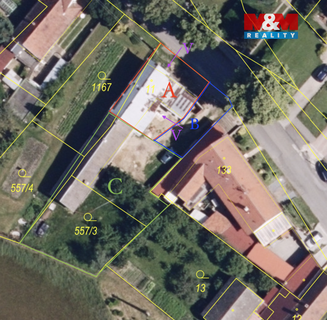 Nabízíme k prodeji rodinný dům o dispozici 2+1 v klidné části obce Hvozd (Konice - 5,5 km, Litovel - 15 km), s možností půdní vestavby a nutností dodělání rekonstrukce, jež byla započata. Zastavěná plocha je cca 104m2, výměra pozemku (dvůr + předzahrádka) je cca 108m2. Dispozice sestává z plně funkční kuchyně, obývacího pokoje, ložnice, koupelny s vanou, (WC je třeba osadit), vstupní chodby a budoucí technické místnosti (kotelny) se vstupem na půdu. Dům je fyzicky oddělen od sousedního, právně (geometrický výměr, samostatné ČP) je třeba dořešit v součinnosti s prodávajícím, stejně jako samostatný přípoj elektřiny a vody. Nemovitost je vhodná pro zájemce, kteří hledají dům s potenciálem a jsou ochotni se zavěnovat rekonstrukci a právním aspektům (rozdělení nemovitosti). Předmět převodu a plánované finální rozdělení, viz. foto: A - RD s pozemkem (cca), B - společný vjezd, C - soused, V - vchody. Pro více informací, či domluvení prohlídky, neváhejte kontaktovat makléře.
